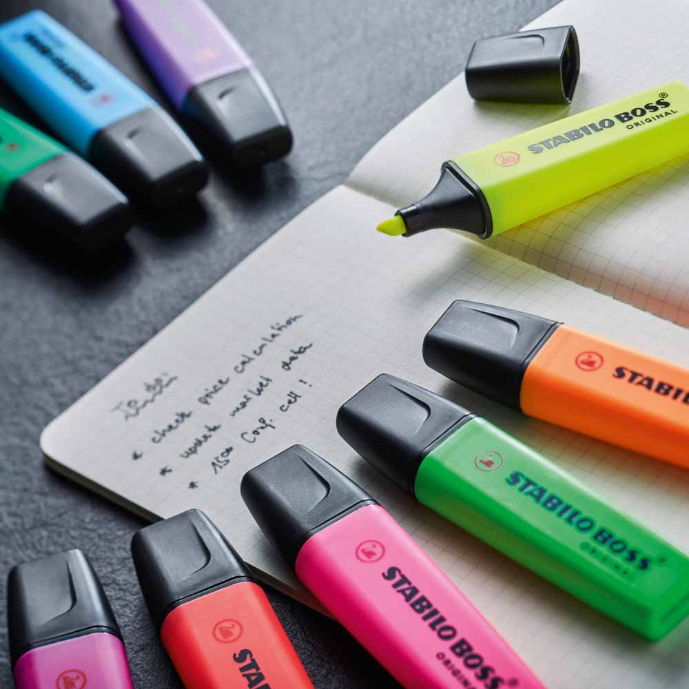 Zakreślacz STABILO BOSS ORIGINAL to legenda wśród zakreślaczy, ciesząca się niesłabnącą popularnością od ponad pięciu dekad. Dostępny w imponującej palecie 30 kolorów, umożliwia tworzenie barwnych, wyrazistych notatek.