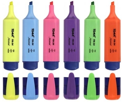 Zakreślacz doskonale sprawdza się na każdym rodzaju papieru, w tym samokopiującym i papierze do faksu. Jego ścięta końcówka zapewnia precyzyjne linie, a tusz na bazie wody jest bezpieczny i trwały.