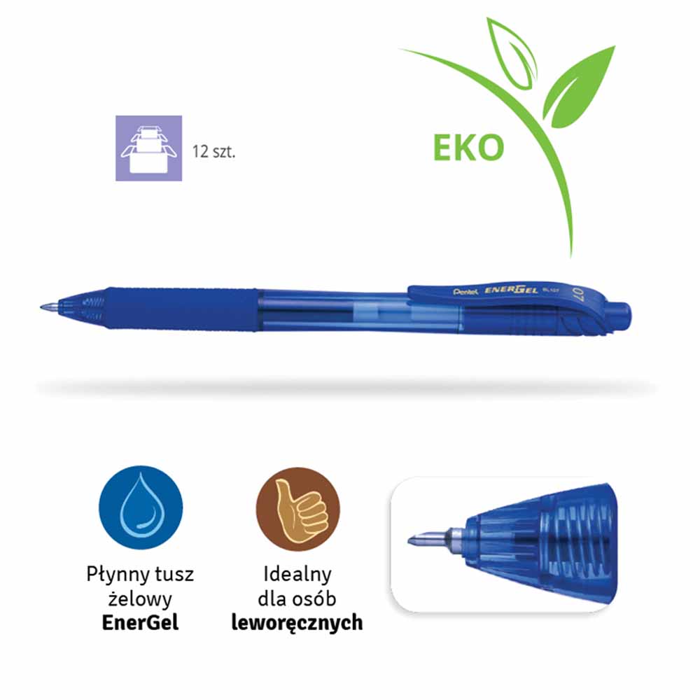 Cienkopis kulkowy Pentel EnerGel BLN105 jest wykonany w 54% z materiałów przetworzonych, co czyni go ekologicznym wyborem dla każdego, kto dba o środowisko.
