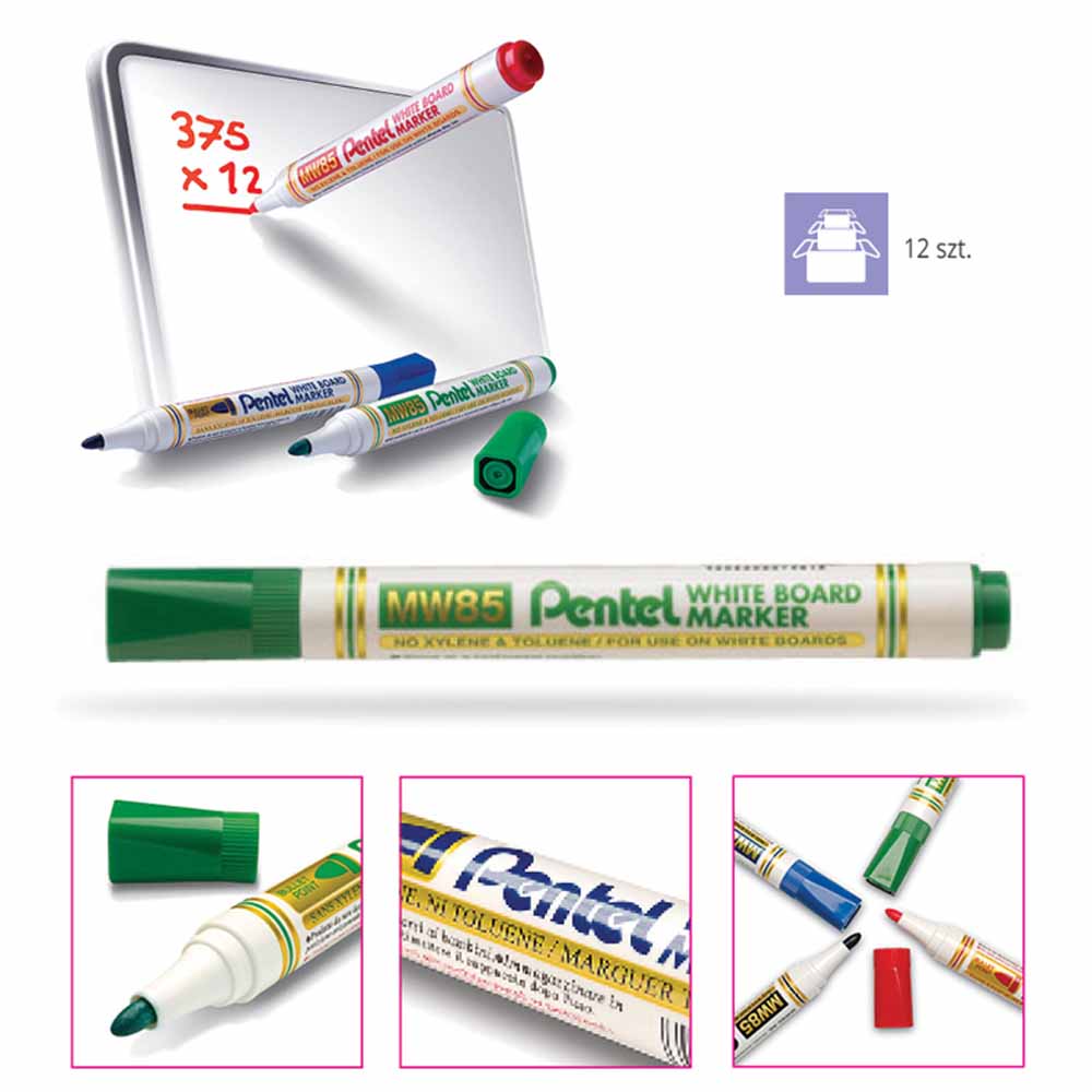 Wyraźne kolory tuszu i łatwość ścierania sprawiają, że marker Pentel MWL5M Maxiflo jest idealnym narzędziem do codziennego użytku na tablicach suchościeralnych.