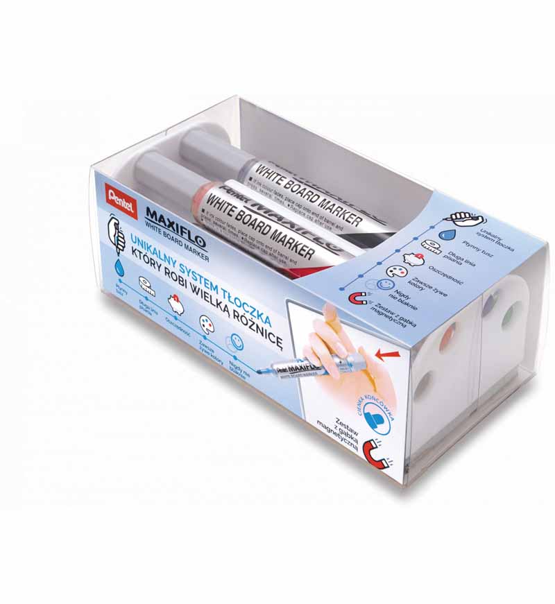 Wyraźne kolory tuszu i łatwość ścierania sprawiają, że marker Pentel MWL5M Maxiflo jest idealnym narzędziem do codziennego użytku na tablicach suchościeralnych.