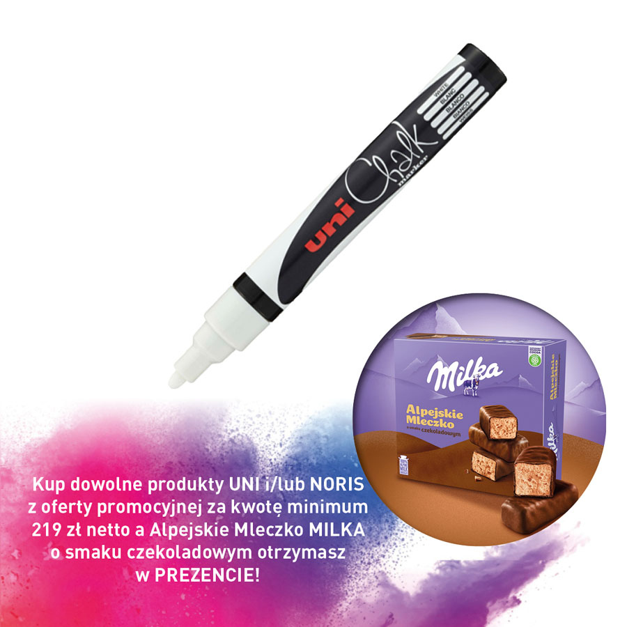 jm.: szt Kup dowolne produkty UNI i/lub NORIS z oferty promocyjnej za kwotę minimum 219 zł netto a Alpejskie Mleczko MILKA o smaku czekoladowym otrzymasz w PREZENCIE!