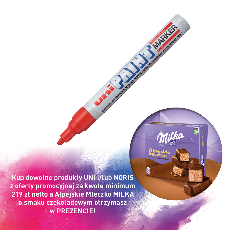 jm.: szt Kup dowolne produkty UNI i/lub NORIS z oferty promocyjnej za kwotę minimum 219 zł netto a Alpejskie Mleczko MILKA o smaku czekoladowym otrzymasz w PREZENCIE!