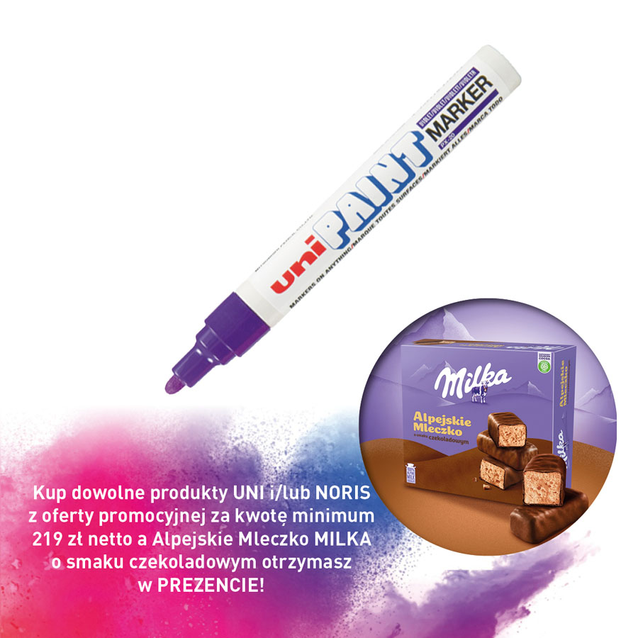 jm.: szt Kup dowolne produkty UNI i/lub NORIS z oferty promocyjnej za kwotę minimum 219 zł netto a Alpejskie Mleczko MILKA o smaku czekoladowym otrzymasz w PREZENCIE!