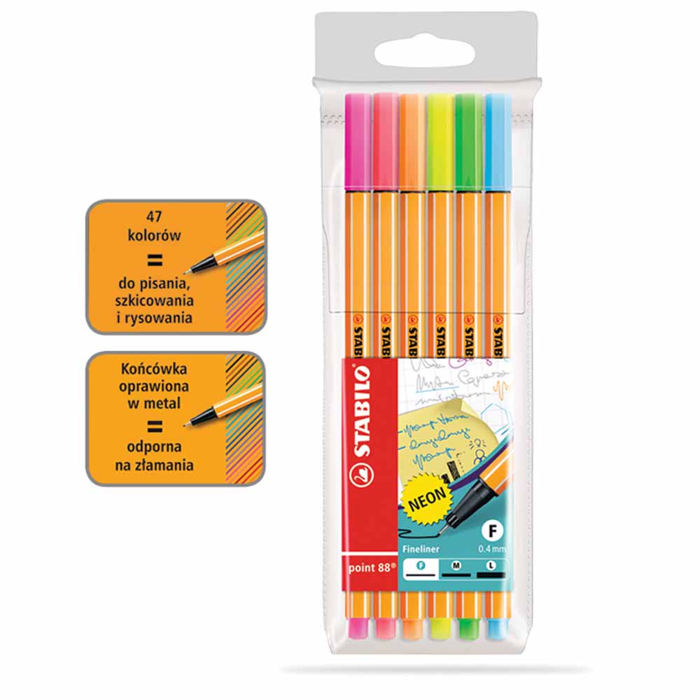 STABILO point 88 to uniwersalne narzędzie do pisania, podkreślania, kreślenia i kolorowania. Jego wszechstronność sprawia, że jest idealny zarówno do pracy biurowej, jak i do kreatywnych projektów szkolnych czy domowych.