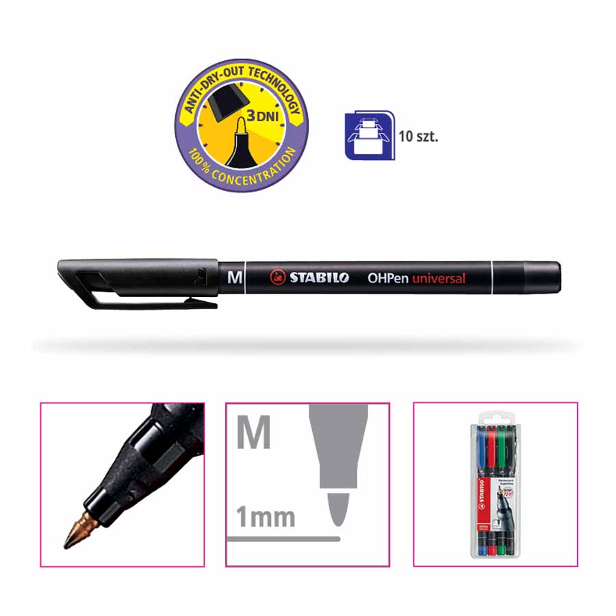 Foliopis STABILO OHPen S jest niezwykle wszechstronny, idealny do pisania na szkle, torebkach foliowych, etykietach, zdjęciach, błyszczącym papierze, płytach CD oraz zdjęciach rentgenowskich. Jego uniwersalność sprawia, że jest niezastąpiony w wielu sytuacjach.