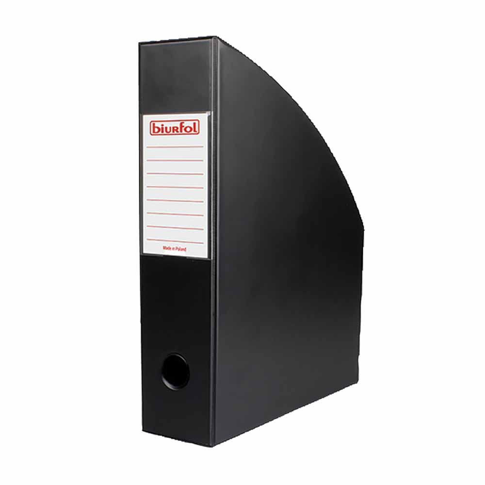 - pojemnik jest pogłębiony, tzn. można w nim swobodnie przechowywać pliki dokumentów wpiętych w skoroszyty, itp. okładki