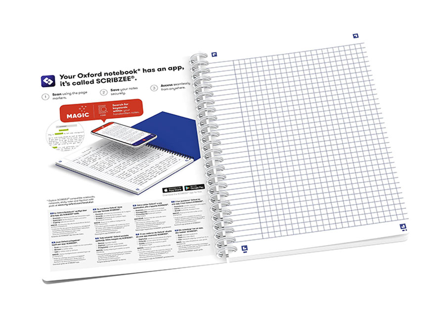 - specjalna liniatura z tagami umożliwia skanowanie notatek za pomocą aplikacji Scribzee