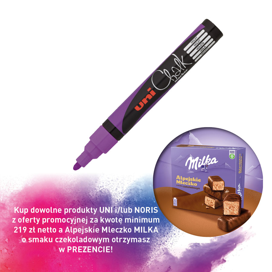 jm.: szt Kup dowolne produkty UNI i/lub NORIS z oferty promocyjnej za kwotę minimum 219 zł netto a Alpejskie Mleczko MILKA o smaku czekoladowym otrzymasz w PREZENCIE!