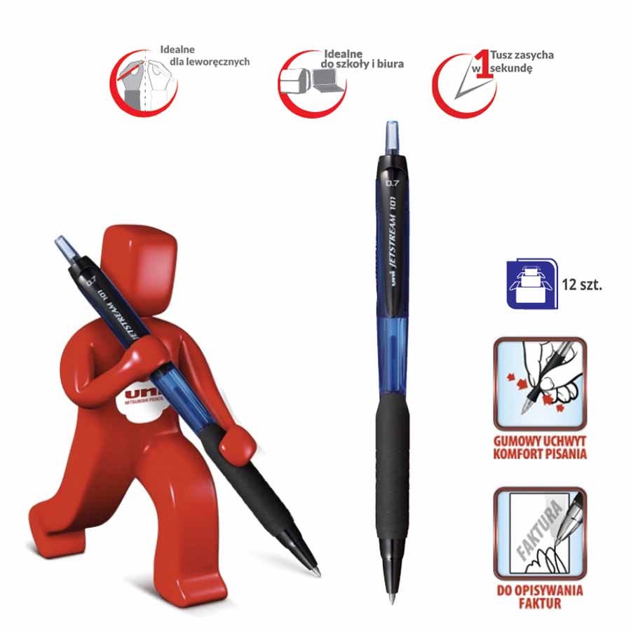 Długopis wyposażony jest w gumowy uchwyt w kolorze tuszu, co gwarantuje pewny chwyt i dodatkowy komfort pisania. To idealne rozwiązanie dla osób ceniących sobie wygodę i funkcjonalność.