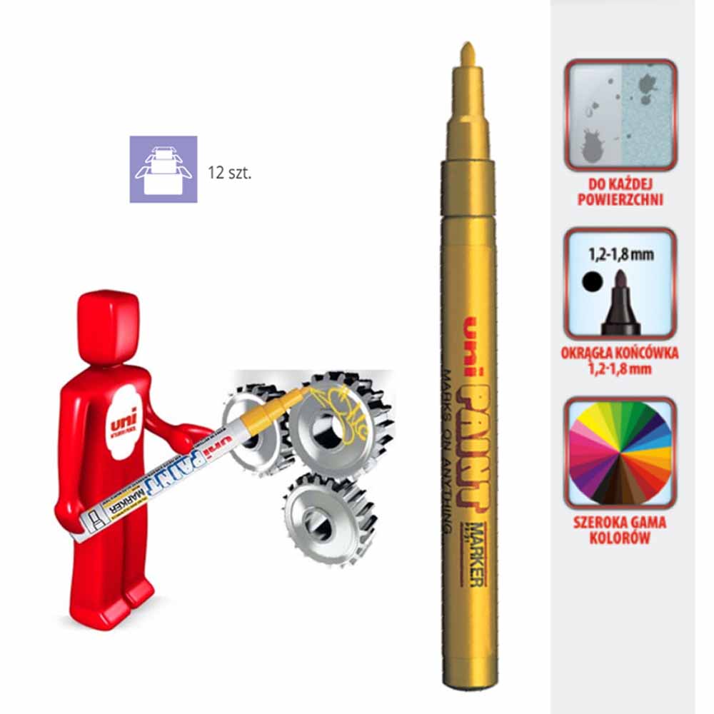 - trwały tusz o słabym zapachu i kryciu zbliżonym do lakieru jest wysoce odporny na ścieranie, działanie światła i temperatury (widoczny do 400 stopni C, kolory biały i żółty - nawet do 1000 stopni C)