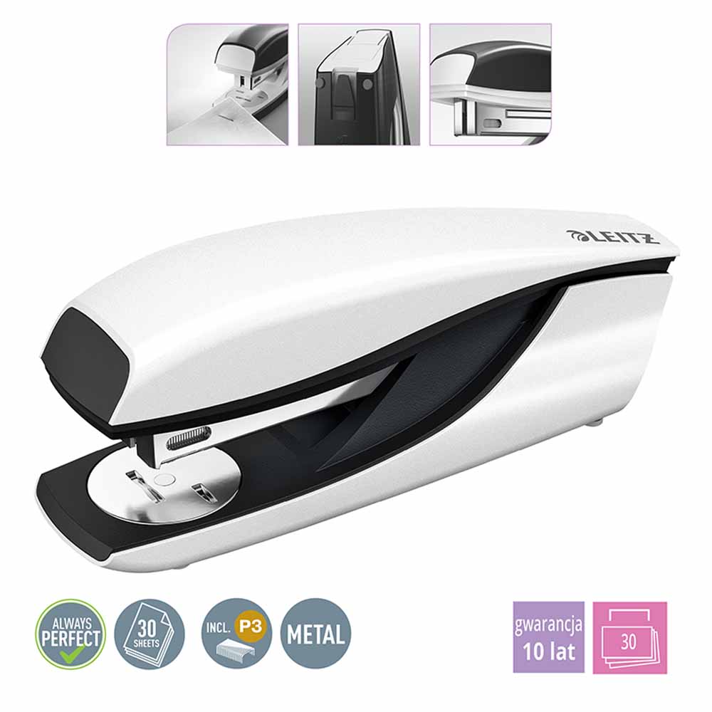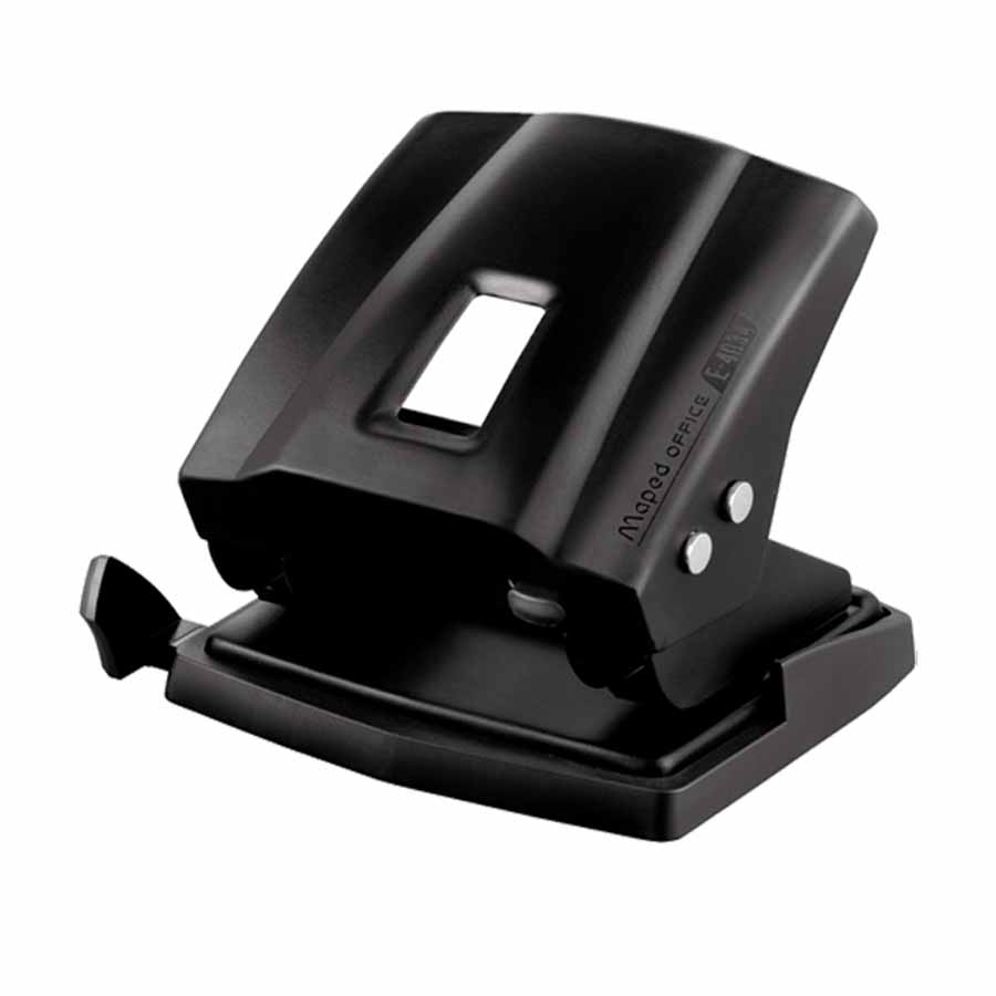 - metalowy dziurkacz biurowy z wykończeniami z tworzywa sztucznego