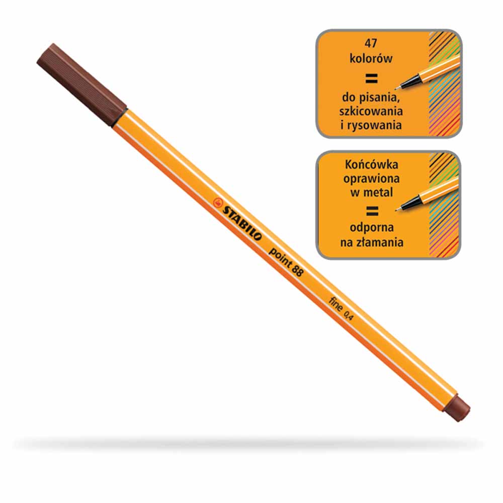 fibrowa końcówka oprawiona w metal, odporna na rozwarstwianie się obudowa w kolorze tuszu o heksagonalnym kształcie i paskami w wzdłuż obudowy, w kolorach obudowy: czerwonym, niebieskim, zielonym- pasek koloru czarnego, w czarnym kolorze obudowy pasek koloru szarego wentylowana skuwka w kolorze tuszu o heksagonalnym zakończeniu tusz na bazie wody, odporny na wysychanie bezzapachowy nietoksyczny długość linii pisania: 500-600m linia pisania: 0,4mm końcówka: 0,4mm występuje w 4 kolorach (czarny, czerwony, niebieski, zielony) w op. po 10 szt. w jednym kolorze oraz w kompletach w etui – mix 4 kolory na każdym cienkopisie nazwa modelu D-fine, marki Donau oraz grubość 0,4mm idealny do tworzenia kolorowych notatek, pracy z szablonem itp. do użytku w biurze, szkole oraz w domu obudowa wykonana z PP ISO 9001 kolor: czarny
