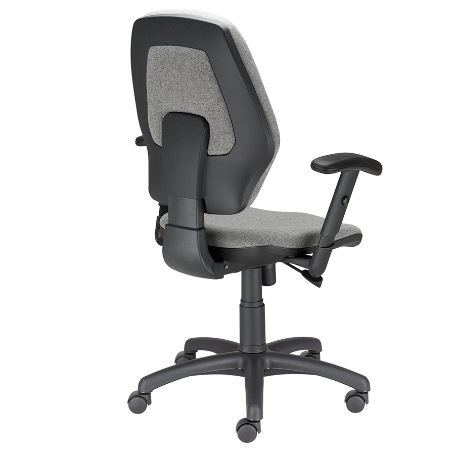 Siedzisko i oparcie zostały wykonane z wytrzymałej pianki wylewnej, co gwarantuje zarówno trwałość, jak i oryginalny wygląd. Regulowane podłokietniki z miękką nakładką PU zwiększają komfort użytkowania, a czarna podstawa jezdna Fi710 mm wykonana z poliamidu zapewnia stabilność i mobilność. Kółka Fi50 mm przeznaczone są do powierzchni twardych.