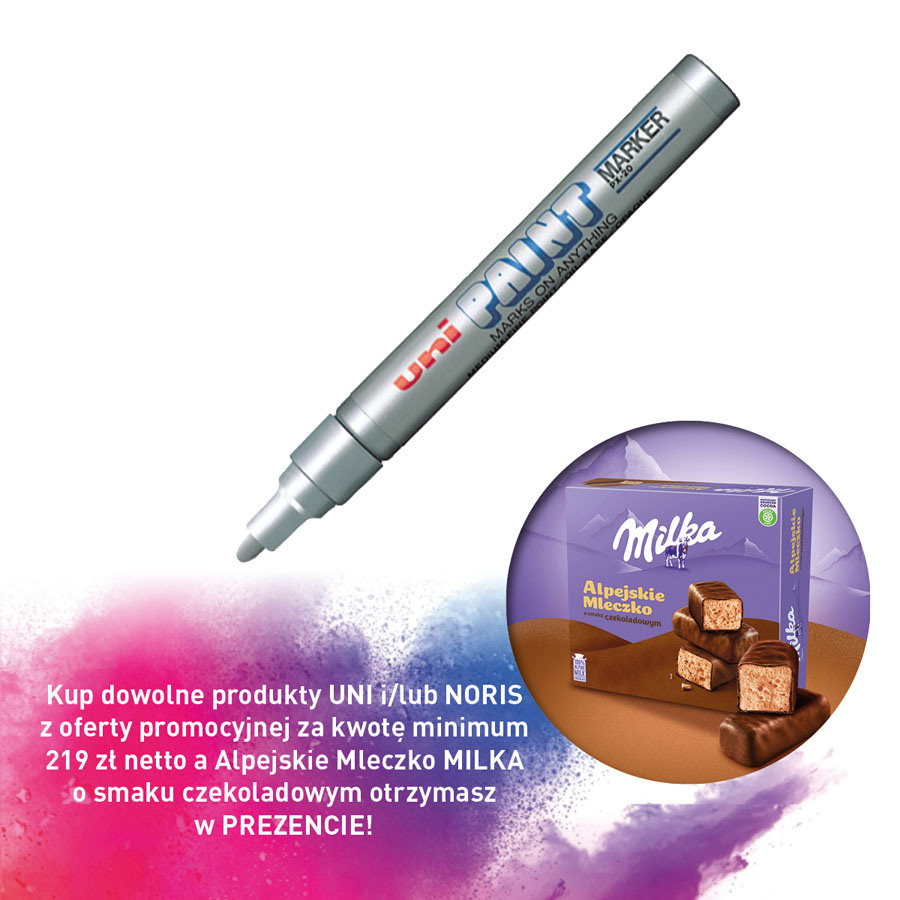 jm.: szt Kup dowolne produkty UNI i/lub NORIS z oferty promocyjnej za kwotę minimum 219 zł netto a Alpejskie Mleczko MILKA o smaku czekoladowym otrzymasz w PREZENCIE!