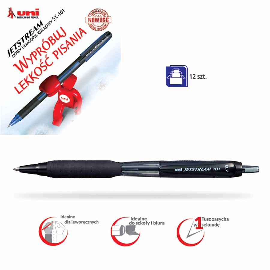 - atrament na bazie oleju: trwały, wodoodporny, szybkoschnący (<2s), gwarantujący płynność pisania