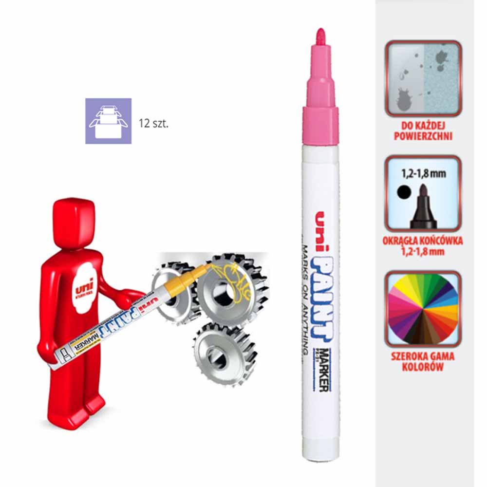 Marker olejowy UNI PX-20, w kolorze różowym, to niezastąpione narzędzie do znakowania wszelkiego rodzaju powierzchni: szorstkich, gładkich i tłustych. Bez względu na to, czy pracujesz z metalem, szkłem, kamieniem, plastikiem, styropianem czy drewnem, UNI PX-20 zapewnia wyraziste i trwałe oznaczenia.