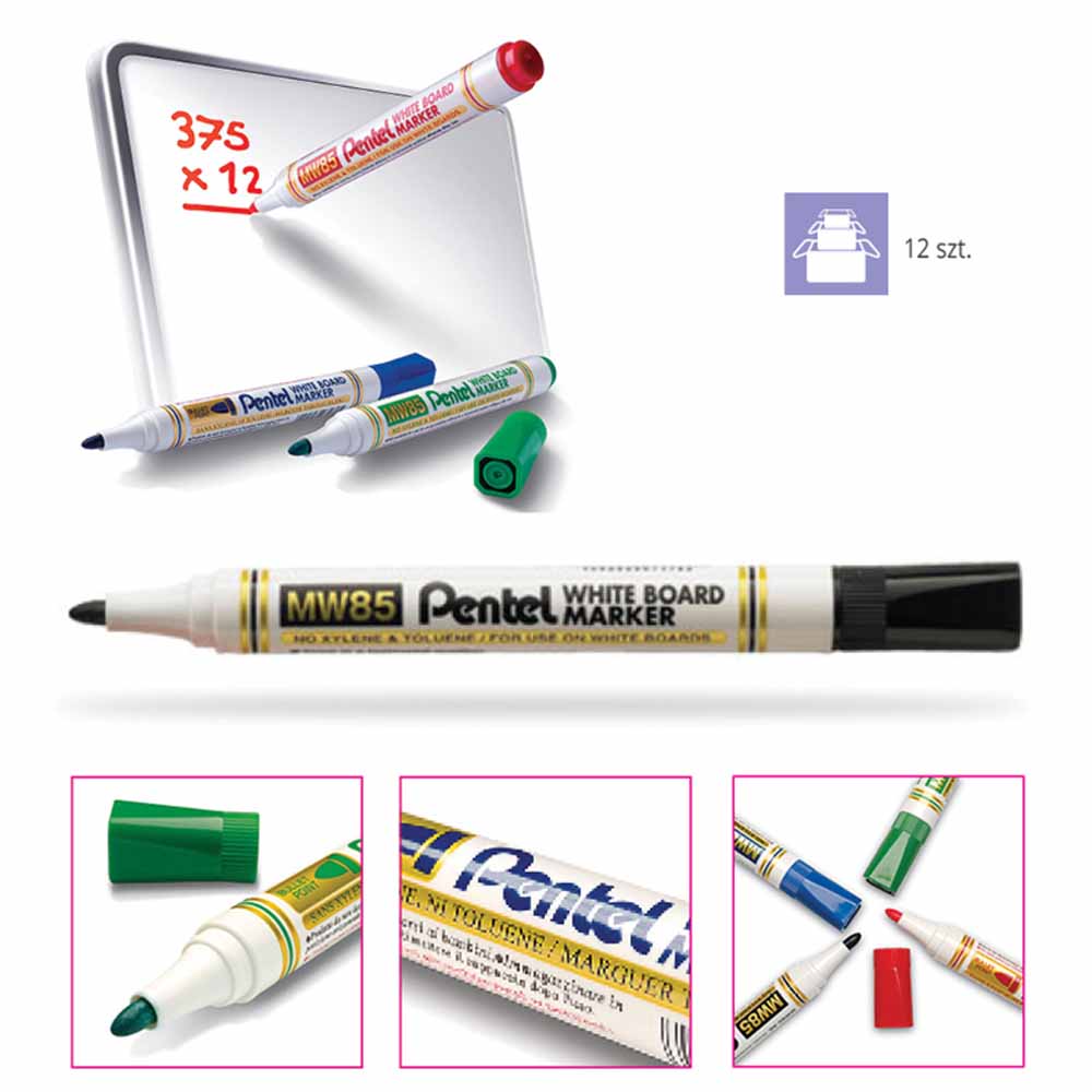 Wyraźne kolory tuszu i łatwość ścierania sprawiają, że marker Pentel MWL5S Maxiflo jest idealnym narzędziem do codziennego użytku na tablicach suchościeralnych.