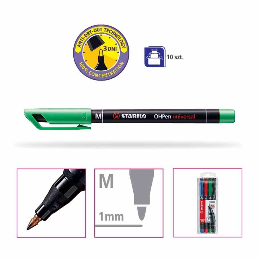 Tusz w foliopisie Rystor F schnie szybko, nie rozmazuje się, jest wodoodporny i odporny na działanie promieni słonecznych. Dzięki temu oznaczenia są trwałe i wyraźne, a intensywność barw pozostaje niezmieniona.
