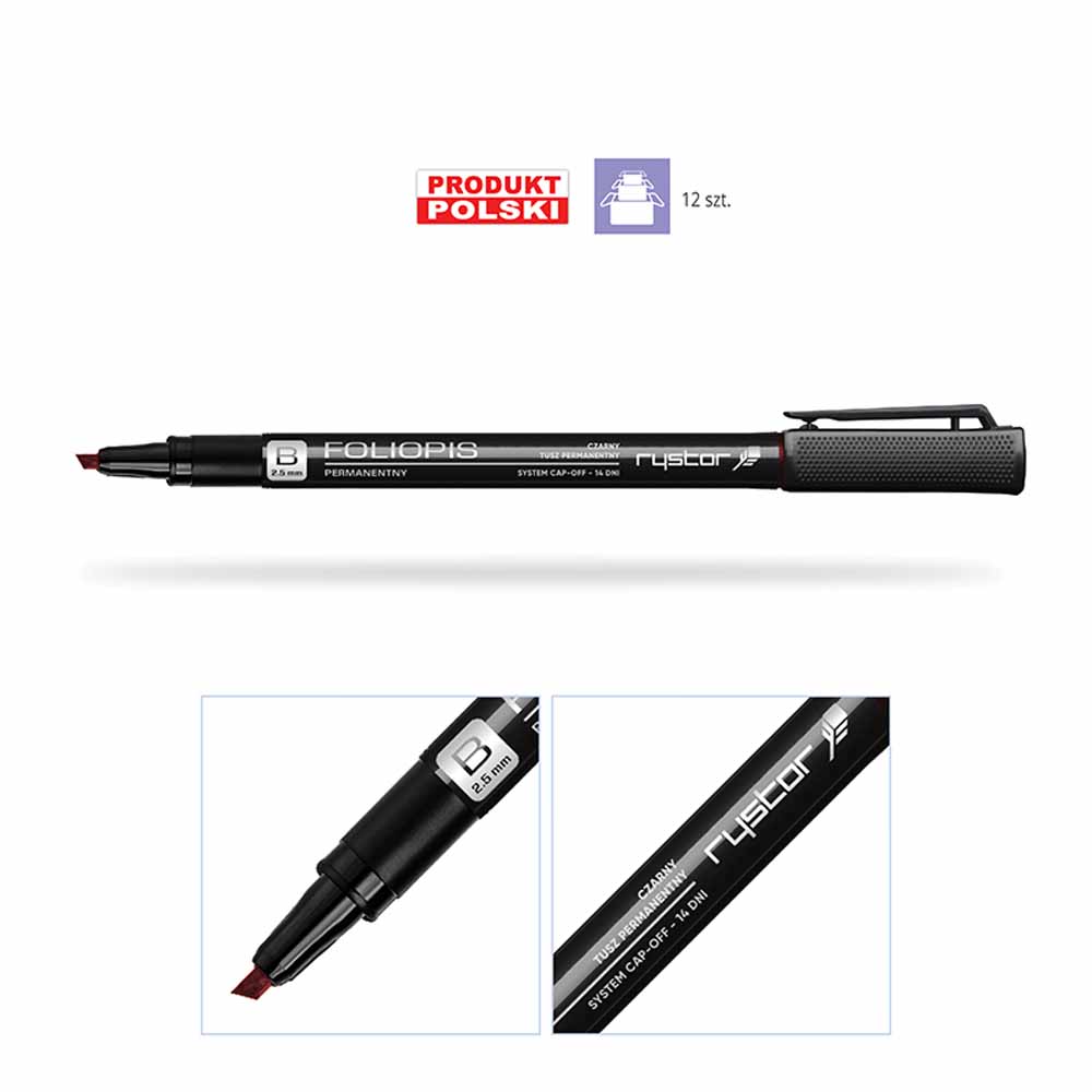 Tusz w foliopisie Rystor M schnie szybko, nie rozmazuje się, jest wodoodporny i odporny na działanie promieni słonecznych. Dzięki temu oznaczenia są trwałe i wyraźne, a intensywność barw pozostaje niezmieniona.